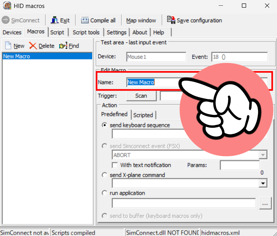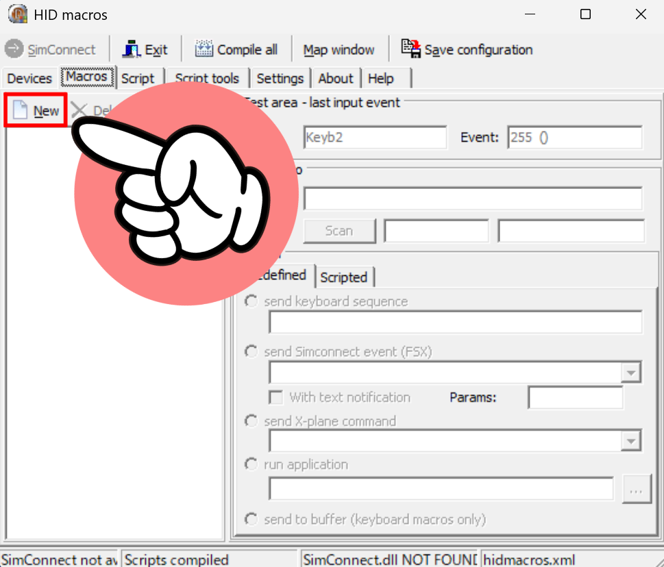 ↑無事に起動できたらインストール終了ですね。2回目以降の起動はHIDMacros.exeをダブルクリックするだけで大丈夫です。